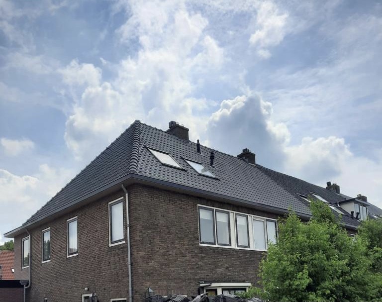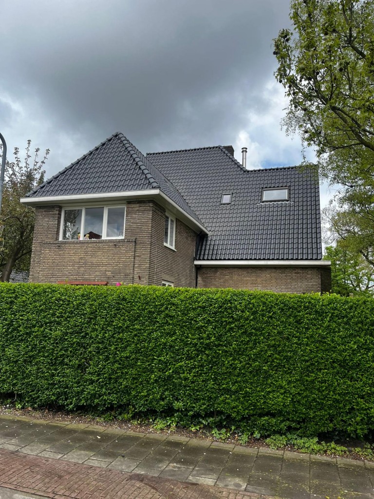 Bij een hoekwoning op de Larenseweg in Hilversum hebben we de dakpannen vervangen met OVH blauw gesmoord dakpannen. Door onze 30 jarige garantie hoeven de bewoners zich voorlopig niet meer te bekommeren om hun dak.